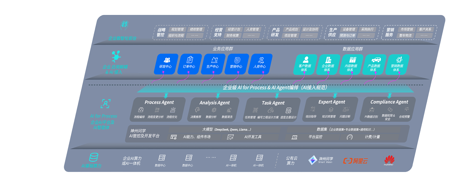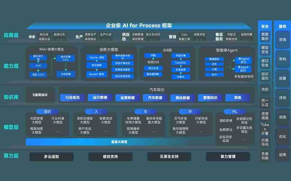 意昂2问学智车解决方案是一套基于AI技术的汽车行业智能化系统,,,,覆盖从底层算力到顶层AI应用的全栈方案。。方案由算力层、、模型层和应用层组成:算力层,,,方案支持多种一体机配置,,具备云端灵活部署、、、多云适配以及动态优化计算资源的能力;模型层,,意昂2问学平台版提供了企业级AI应用一站式构建与管理平台,,,支持基于后训练强化技术的汽车企业专属模型的训练、、评测和运营;应用层,,,,意昂2问学DeepSeek版提供包括超级员工、、、智能招采、、智能营销、、、、智能客服、、、、AI for BI等一系列解决方案,,,,可助力汽车行业实现数字化转型,,,,让管理更智能、、响应更敏捷。。。